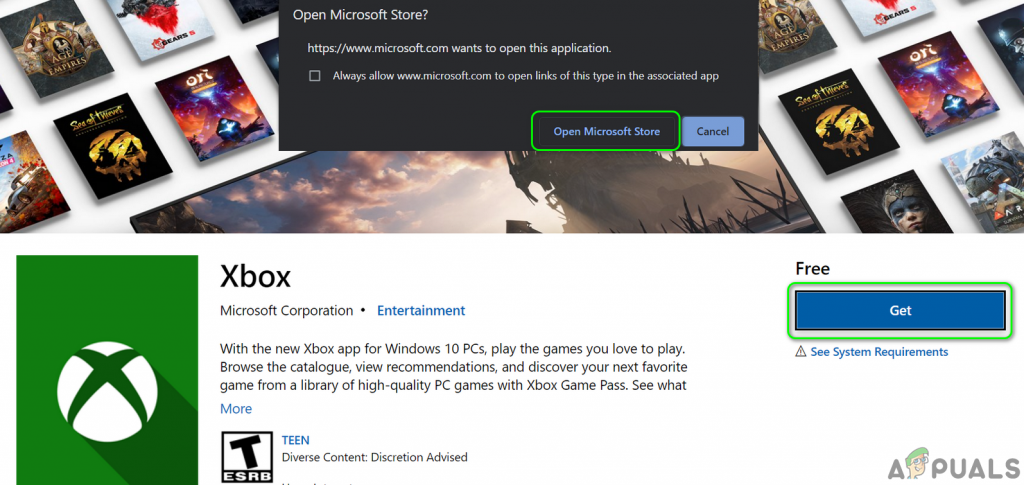 - Then click on the Get button and if you received the prompt to open the Microsoft Store, then click on open Microsoft Store.