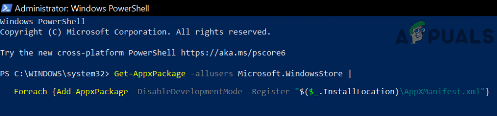 Run the PowerShell Command For All Users to Install the Microsoft Store - Now, reboot your machine and upon reboot, check if the Microsoft issue is resolved.