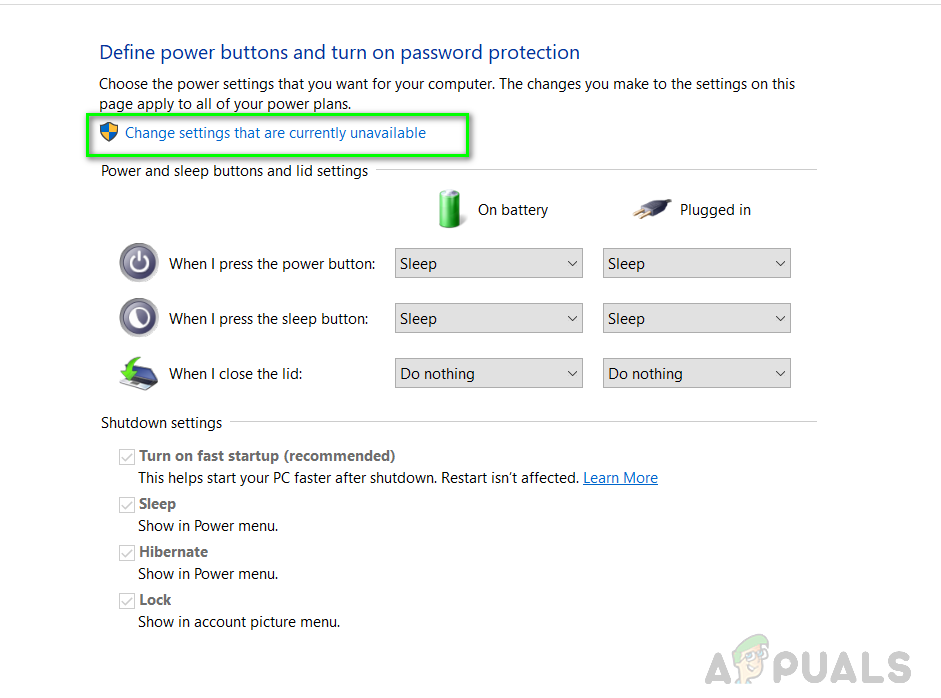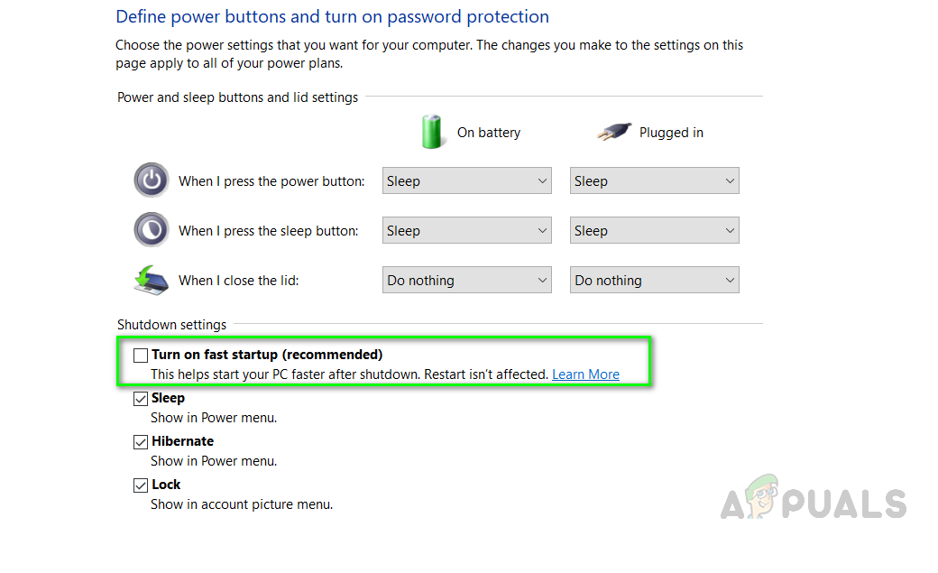 Change settings that are currently unavailable - Under the Shutdown settings, uncheck the Turn on Fast Startup box and then click the Save Changes button to apply changes
