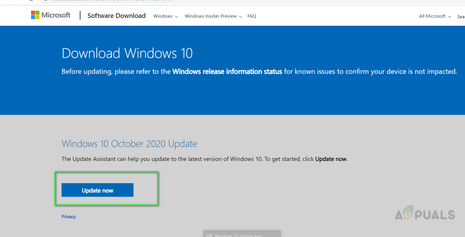 - Now go to the Microsoft Oficial website and by clicking on this link and click on the Update Now button.