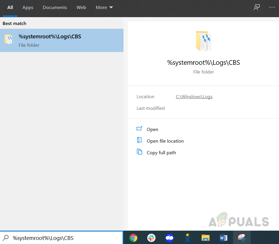 Open CBS.log file folder - You will see the file with the name CBS.Log, rename it to something else.