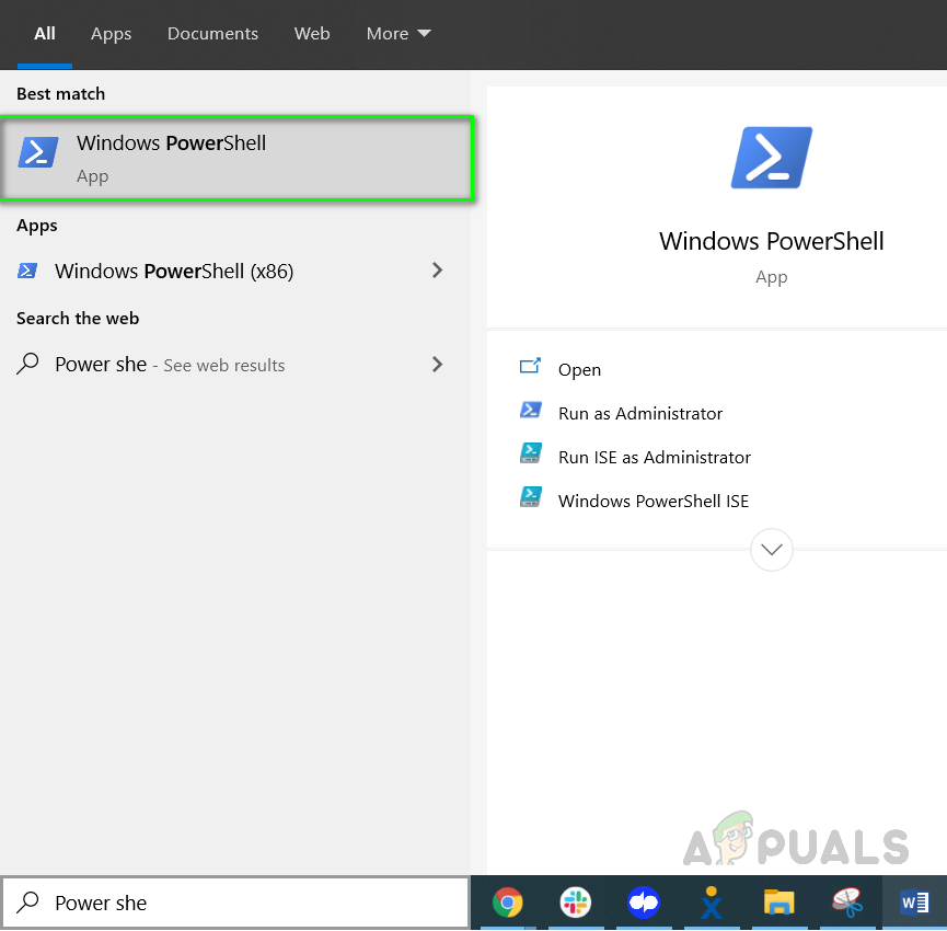 - Open Windows Power Shell by going to Windows Start > Windows Powershell, run this program as administrator.