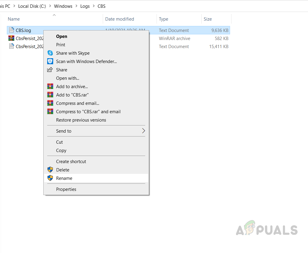 Rename CBS Log file to something else - If you are unable to rename the file then again go to the Search box and type in Services.