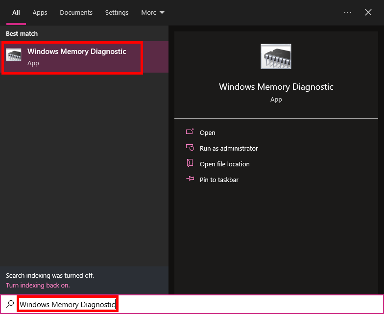 - Search for ‘Windows Memory Diagnostic’ in the Start menu and open the tool.