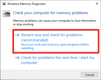 - Select the option to restart your PC and check for problems immediately.