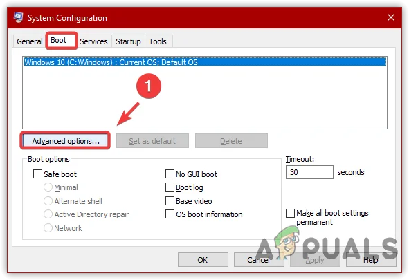 - Go to the Boot tab and select Advanced options.