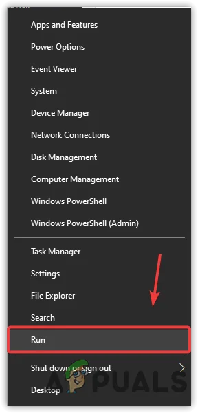 - Right-click on the Windows icon at the bottom left corner and select Run.