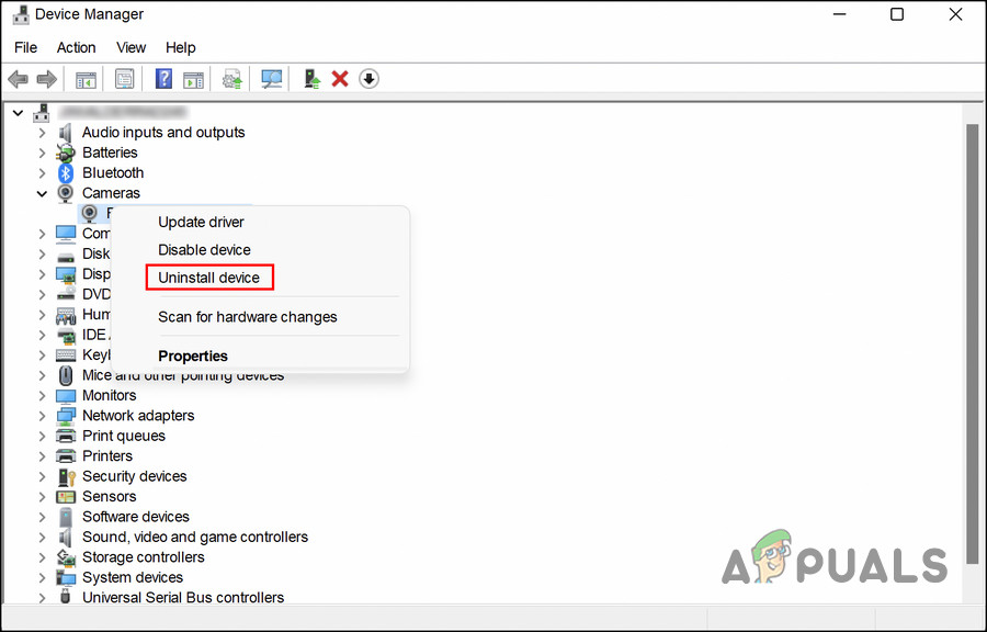 - In the Device Manager window, right-click on your hardware driver and choose Uninstall device.