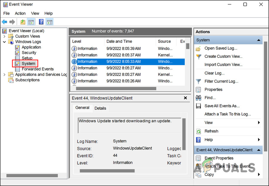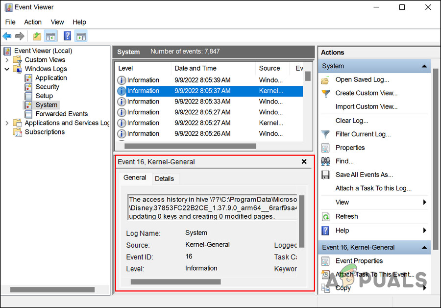 Before we move on to the troubleshooting steps, we recommend you check the Event Viewer’s crash log, which will give you details about why the error occurred. Once you find this information, you can proceed with the most relevant troubleshooting method below.
