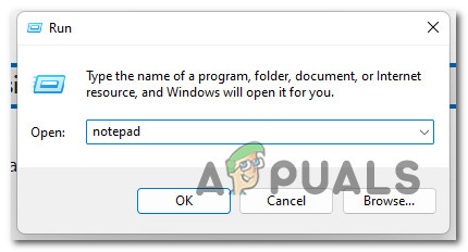 - Press Windows key + R to open the Run dialog. Type ‘notepad’ within the text box, then press Ctrl + Shift + Enter to open Notepad with administrative access.