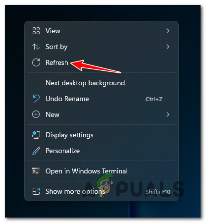 If the desktop does not refresh automatically, right-click on a blank area on the desktop again and select Refresh from the context menu.