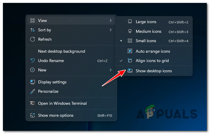 If this issue occurs immediately after installing a pending update for Windows 11, it is likely that the update disabled the visibility of your desktop icons.