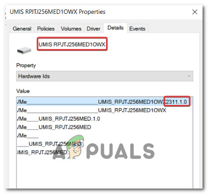 Accessing the Hardware ID property - The model number of the drive you’re now using and the firmware version displayed beneath its name can both be found in the upper part of the drive.