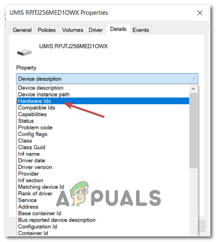 Accessing the Properties screen of your SSD entry - Click on the Details tab at the top of the Properties screen after you’ve arrived there.