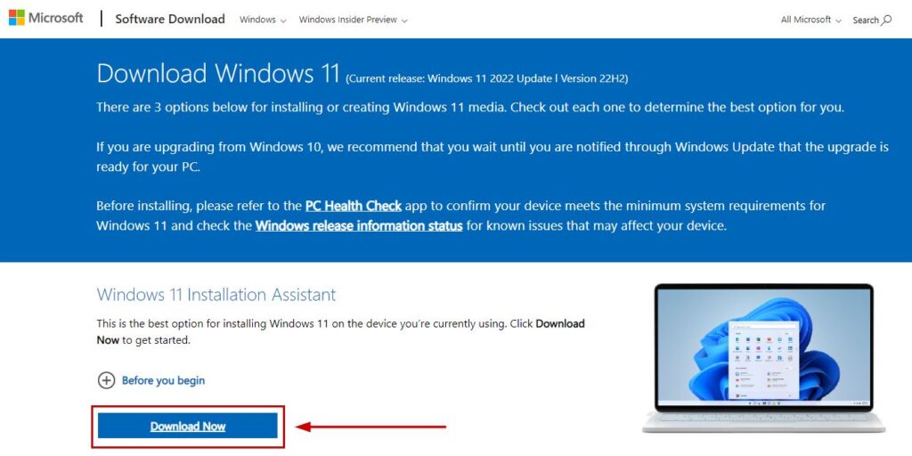 - Click on Download Now inder Windows 11 Installation Assistant.