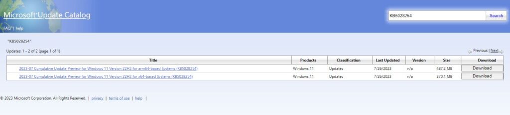 - Go to the Microsoft Update Catalog page.
