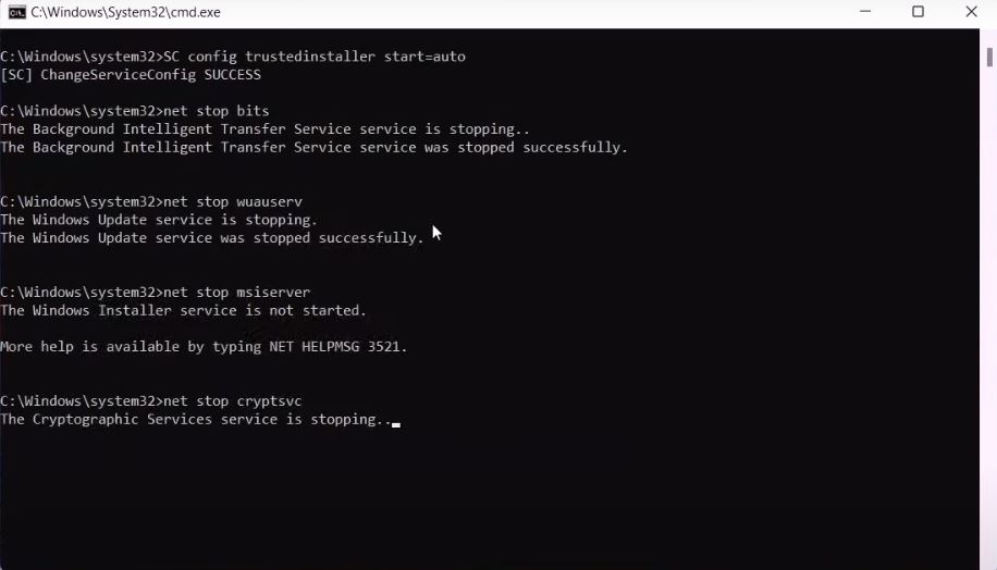 - Reset All Windows Update Components: There are even more services related to Windows updates that can be stopped due to an issue. So here, we’ll be stopping those services ourselves, running some scans like SFC and DISM, and then restarting the services again. This will reset them, and you can install the update easily.