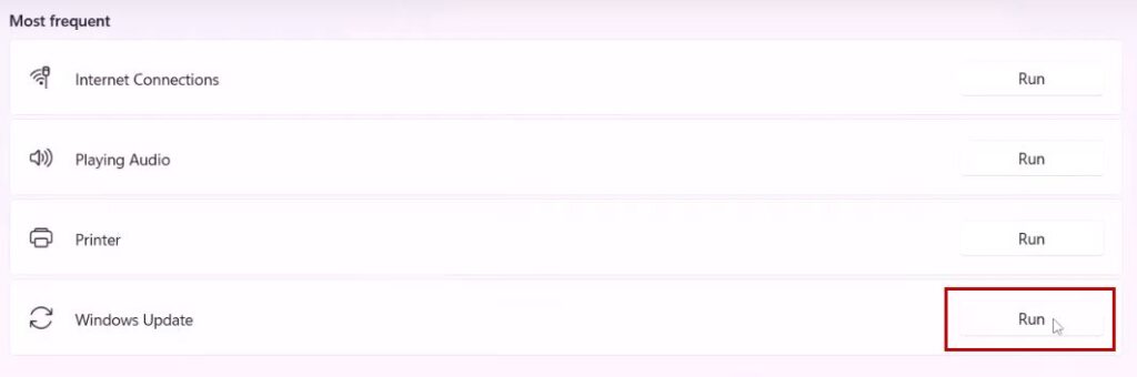 - Click on Run next to Windows Update.