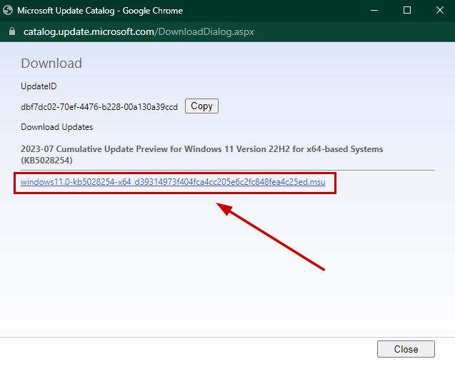 - Now, once the file downloads, run it and install the KB5028254 update.