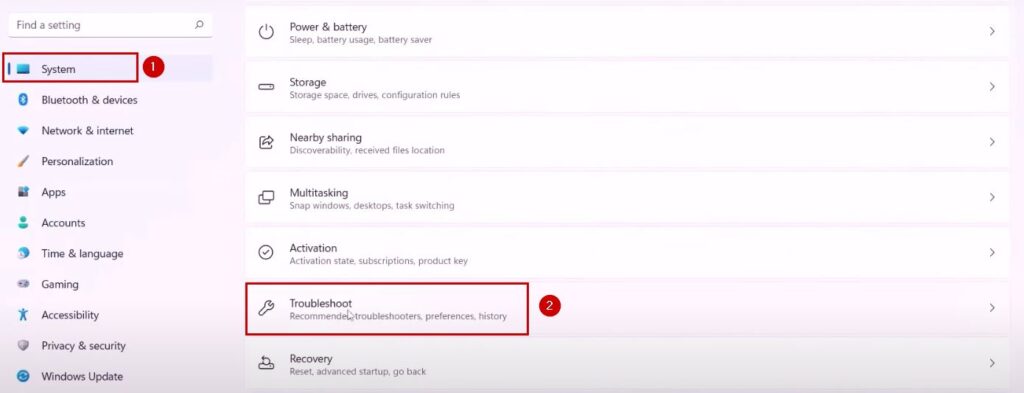 - Scroll down and click on Troubleshoot.