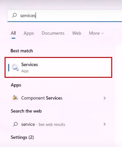 - Type Services and open it.
