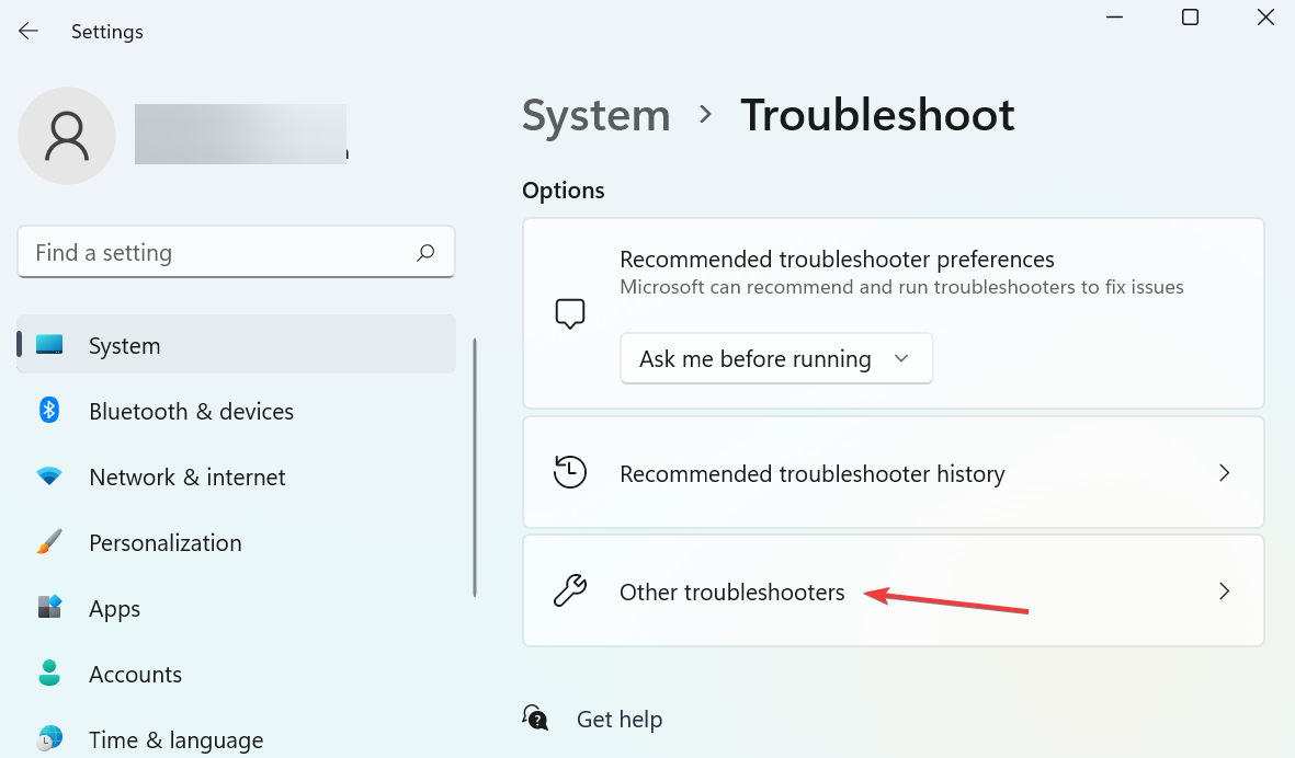 - Choose Other troubleshooters.