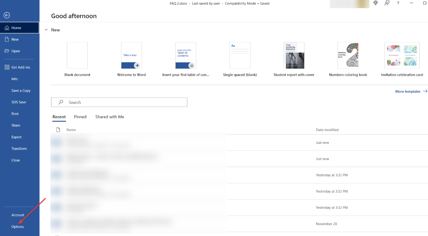 - Click on File, then select the Options tab.