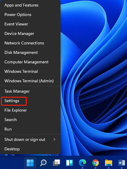- Right-click on the Start button and select the Setting option.