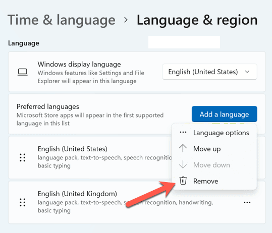 - Click on the three horizontal dots icon from the language that you want the keyboard to remove and choose the Language options. Select Remove from the menu and follow the instructions given.