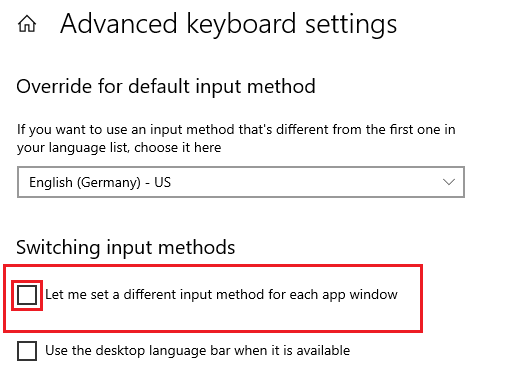 - Find the option labeled Let me set a different input method for each app window.