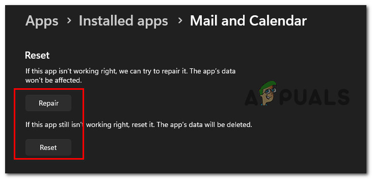 Since the Calendar app and Mail app share the same dashboard, you will need to repair or reset both of them. Fortunately, as it has been confirmed by multiple concerned customers, you might be able to fix this problem by resetting the Windows 11 mail app via the official channels.