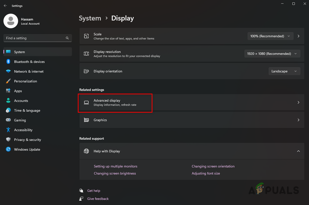 Navigating to Display Settings - After that, scroll down and click on the Advanced display option.
