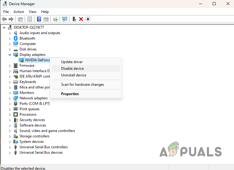 Disabling Display Adapter - Wait for the device to be disabled. Then, right-click on the driver again and choose Enable device.