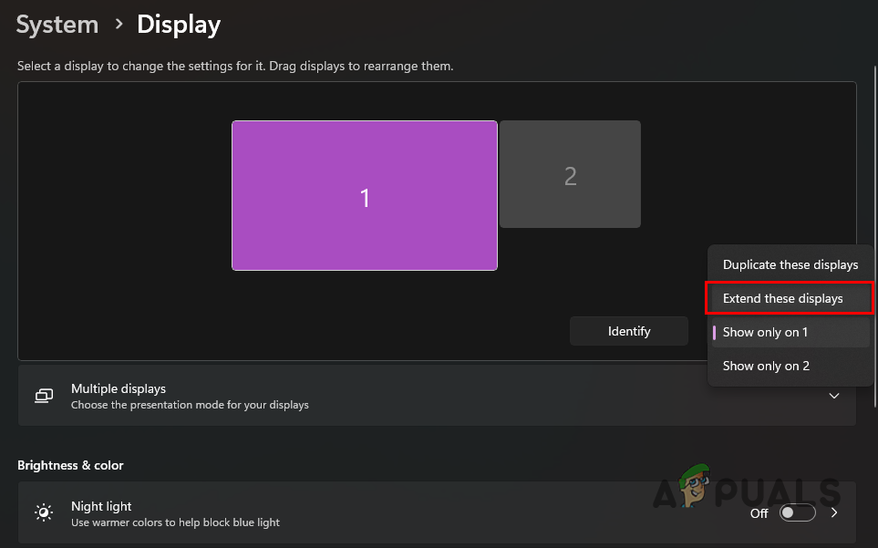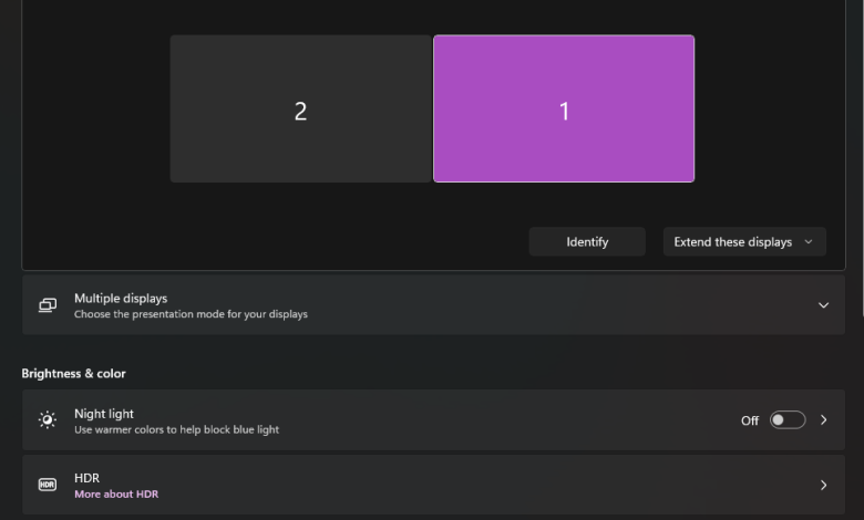 Dual Display - Under these boxes, choose the Extend these displays option from the drop-down menu. Once you do that, Windows will start outputting to the second monitor, which should now display correctly.