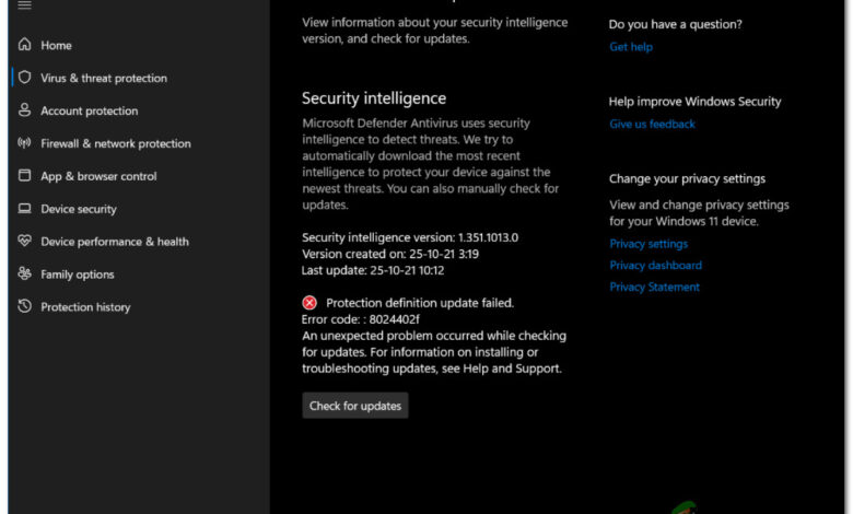 Some Windows 11 that have recently upgraded to the new operating system are reporting that their every attempt at installing new security signatures updates for the Windows 11 security end up failing with the same 8024402F error code.