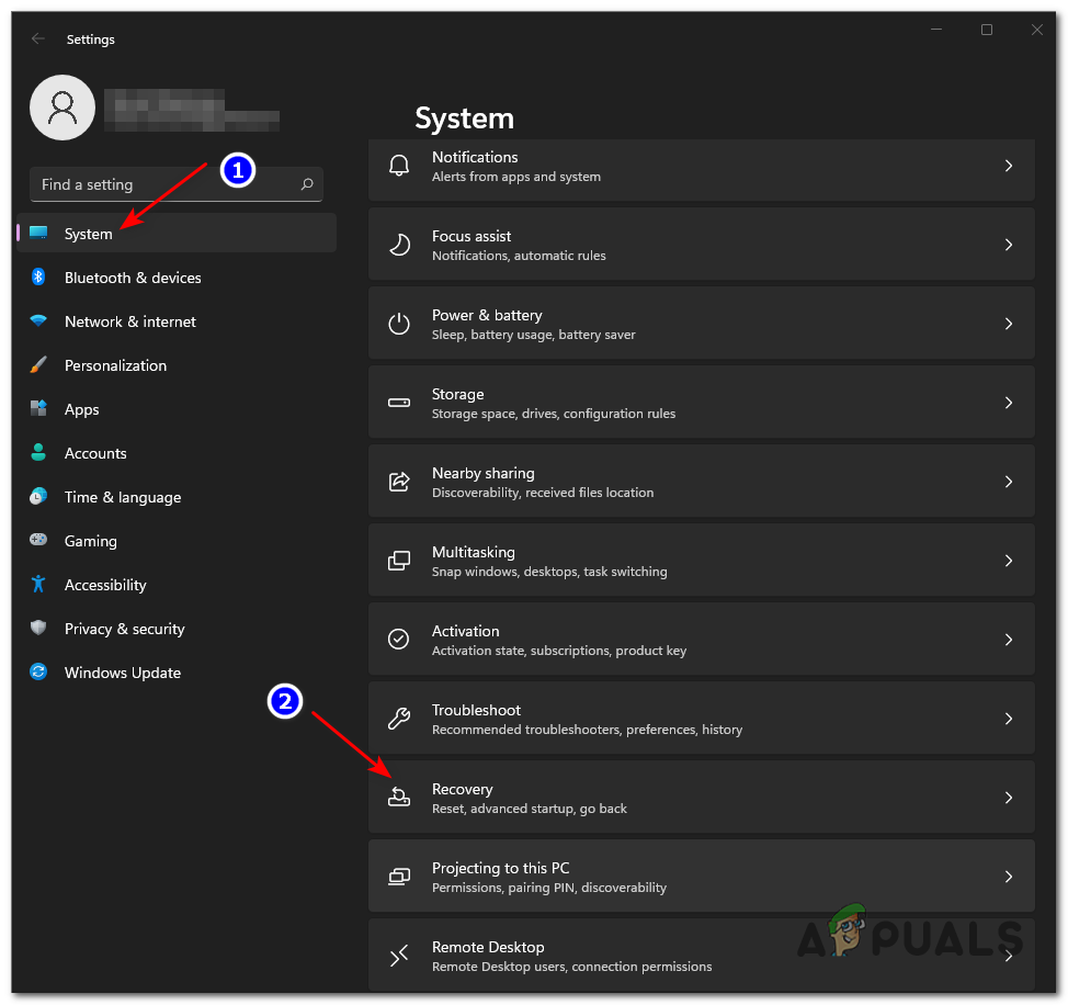 - After that, go to the System Menu and select Recovery from the list of available choices.