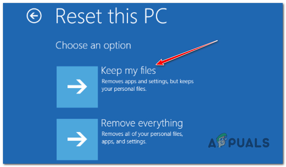 - Next, from the Reset this PC screen, click on Keep My Files.