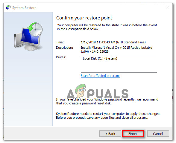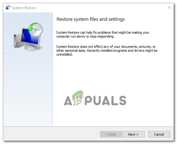 Starting the System Restore process - Once you have successfully used the System Restore to revert your PC state back to a date in which the “Restoring your previous version of Windows” was not occurring, restart your PC and see if the problem is now fixed.