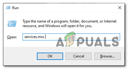 - Press Windows key + R to open up a Run dialog box. Inside the text box, type ‘services.msc’ inside the text box and press Enter to open the Services screen. If you see the UAC (User Account Control), click Yes to grant admin access.