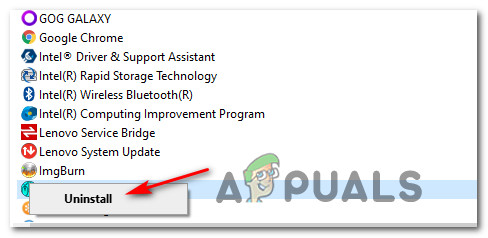 Uninstalling 3rd party antivirus - Next, follow the on-screen prompts to complete the uninstallation, then restart your computer and see if the problem is fixed once the next startup is complete.