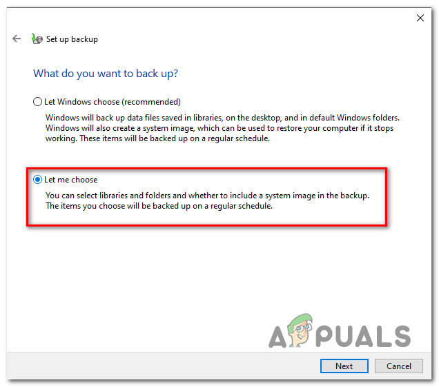 Choosing the features you want to exclude for Windows Backup - Next, from the next menu, go ahead and browse to the location of the library folder that was triggering the error and uncheck the toggle associated with it before clicking on Next.