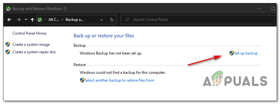 - Once you’re inside the Backup and Restore and click on Set up backup from the list of options.