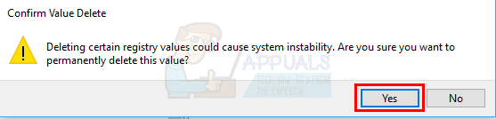 - Click Yes on the confirmation/warning message.
