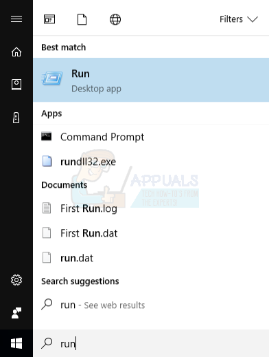 - Click Start, type ‘Run’ and click Run, or in Windows 8/10 right click on the start button and click run
