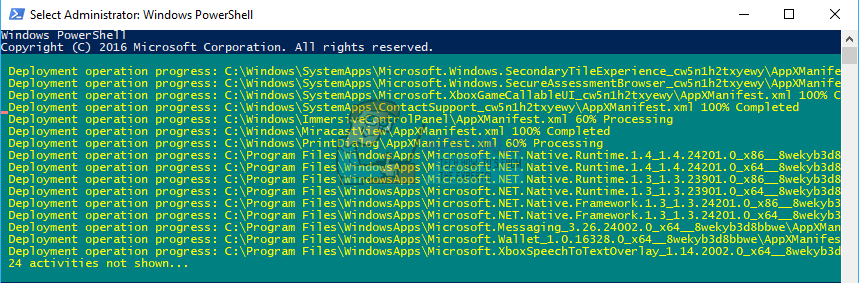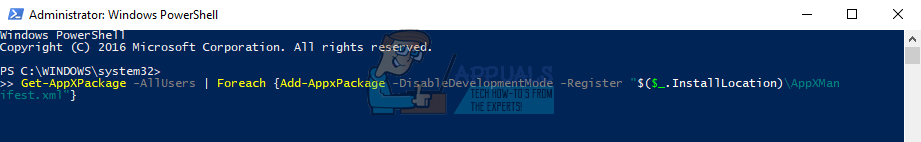 Get-AppXPackage -AllUsers | Foreach {Add-AppxPackage -DisableDevelopmentMode -Register "$($_.InstallLocation)\AppXManifest.xml"}