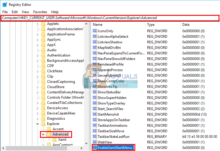 - Call the new key “EnableXamlStartMenu“