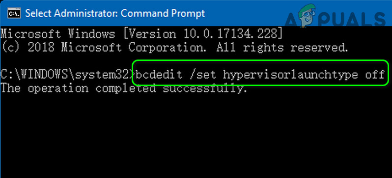 BCDedit /set hypervisorlaunchtype Off