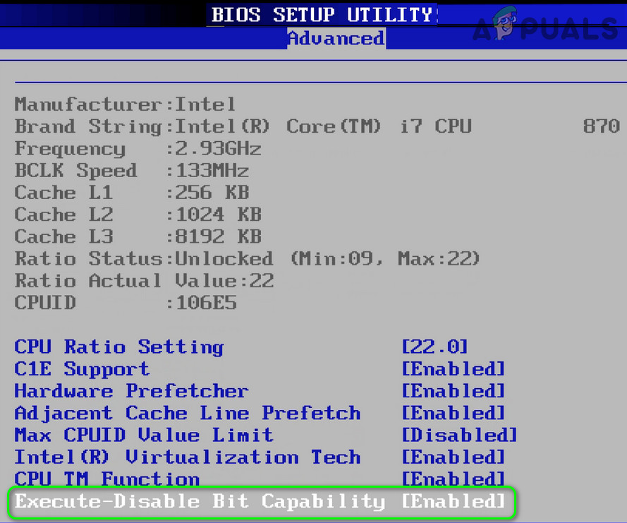 Enable ‘Execute-Disable Bit Capability’ - Now save your changes and then check if the Hypervisor issue is resolved.