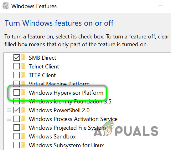 Open ‘Turn Windows Features on or off’ - Now uncheck the option of the Windows Hypervisor Platform and click on the OK button.