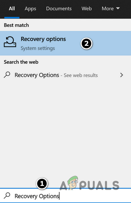 - Now hit the Windows key and type Recovery Options. Then select Recovery Options.